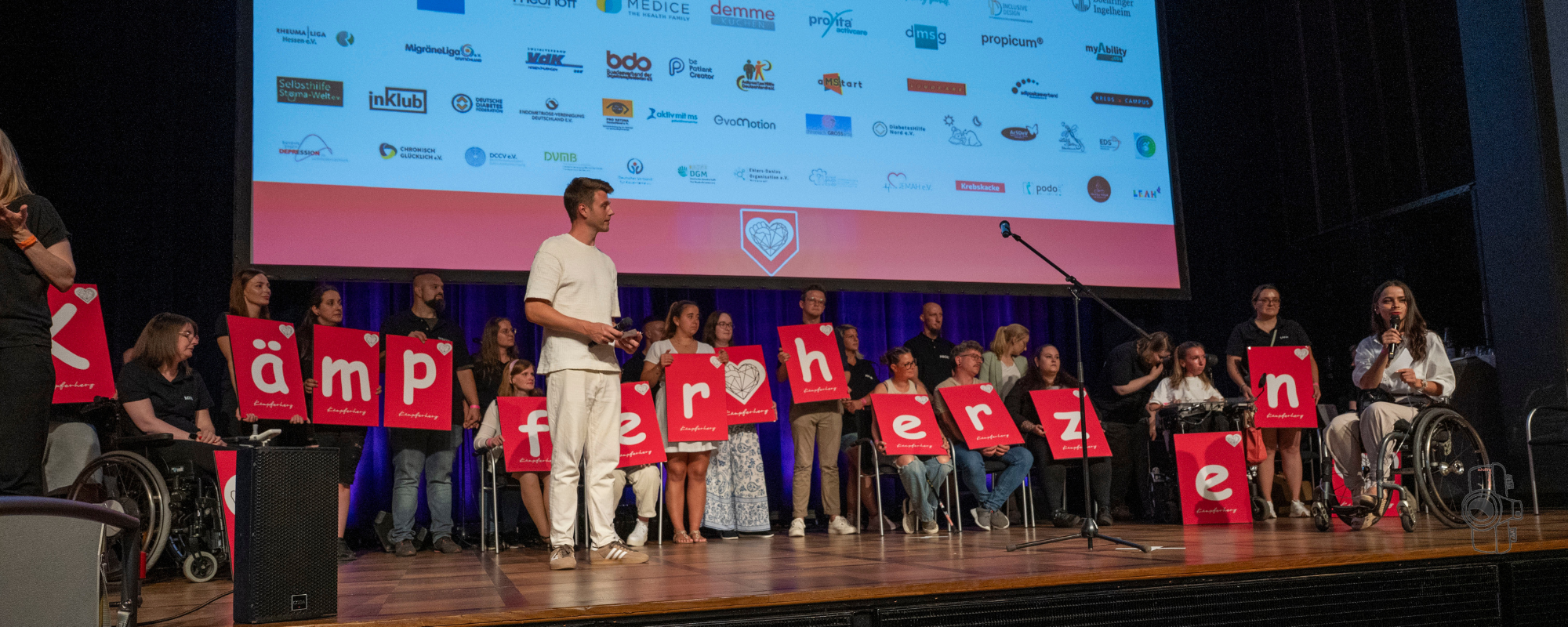 Bereits zum vierten Mal trafen sich am letzten Samstag im Juli mehr als 2400 „Kämpferherzen“ im Kongress-Palais in Kassel, um sich über unterschiedliche Facetten des Lebens mit einer chronischen Erkrankung zu informieren – und natürlich auch, um sich mit anderen Betroffenen auszutauschen und zu netzwerken. Hauptorganisatoren des Kämpferherzen-Treffens sind Kevin Hoffmann und Sabrina Lorentz, beide selbst von einer chronischen Erkrankung betroffen. Ausgehend von einem Aufruf auf dem Instagram-Kanal von Kevin Hoffmann haben beide mit ihrem mittlerweile 30-köpfigen Team dieses Event ins Leben gerufen: einen „Safe Space mit Klassenfahrt-Charakter“, in dem sich die Community im realen Leben trifft.