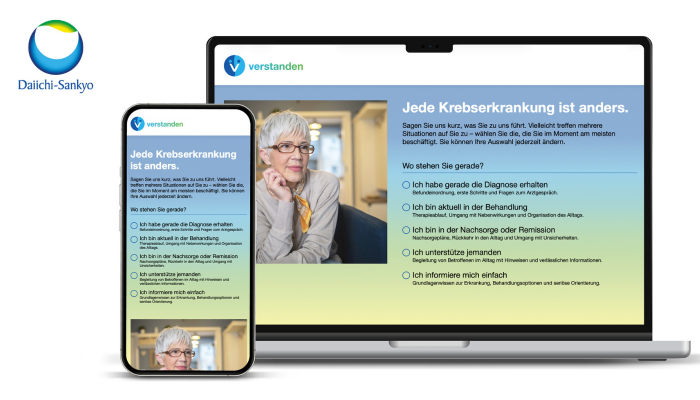 Das Informationsportal Verstanden.med ist eine digitale Plattform, die Betroffene wie Angehörige während ihrer Krebserkrankung und darüber hinaus begleitet. Entwickelt wurde das Informationsportal vom Pharmaunternehmen Daiichi... Mehr erfahren